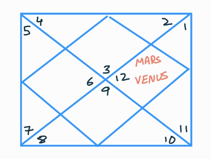 In the above chart of a Gemini Ascendant, we observe that Mars, the ruler of the 6th and 11th houses, is positioned in the 10th house along with Venus, the lord of the 12th house.
